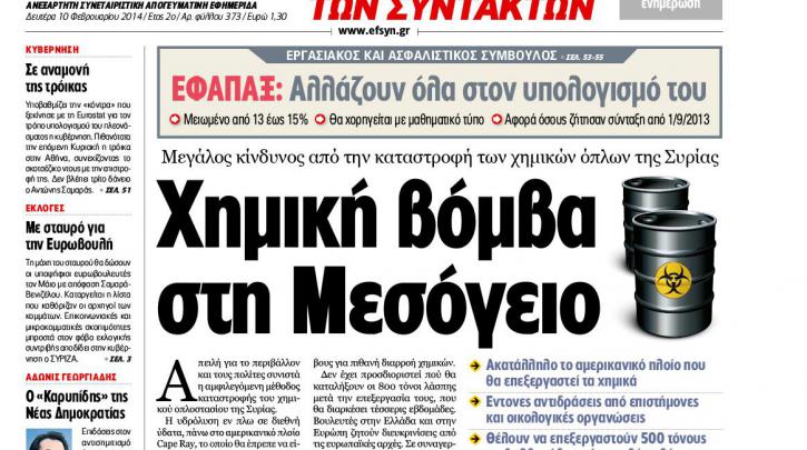 Ενώ κλείνουμε τα σύνορα στους πρόσφυγες της Συρίας, ανοίγουμε τις πόρτες της Μεσογείου για την υποδοχή των τοξικών χημικών της χώρας αυτής με ελάχιστες εγγυήσεις και χωρίς τη συναίνεση επιστημόνων και οικολογικών οργανώσεων. Πυκνώνουν τα δημοσιεύματα στον διεθνή και ελληνικό Τύπο για τις επικίνδυνες συνέπειες της μεθόδου και του τρόπου που θα καταστραφούν τα χημικά και ξυπνάνε επιτέλους όχι μόνο διεθνείς οργανώσεις και επιστήμονες, αλλά και πολλούς βουλευτές στην Ελλάδα και στην Ευρώπη.