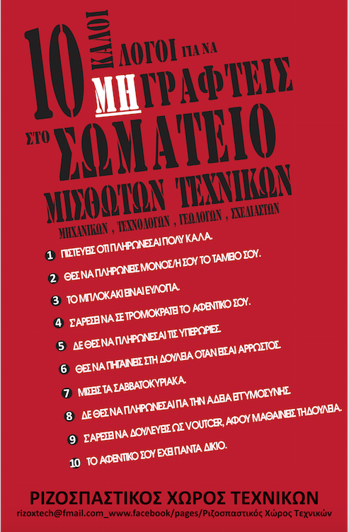 Τα μέλη της Ριζοσπαστικής Πρωτοβουλίας Μηχανικών συμμετέχουν και στηρίζουν το Ριζοσπαστικό Χώρο Τεχνικών. Προθεσμία εγγραφής μελών: Τρίτη 01/12. Επισυνάπτεται η αίτηση