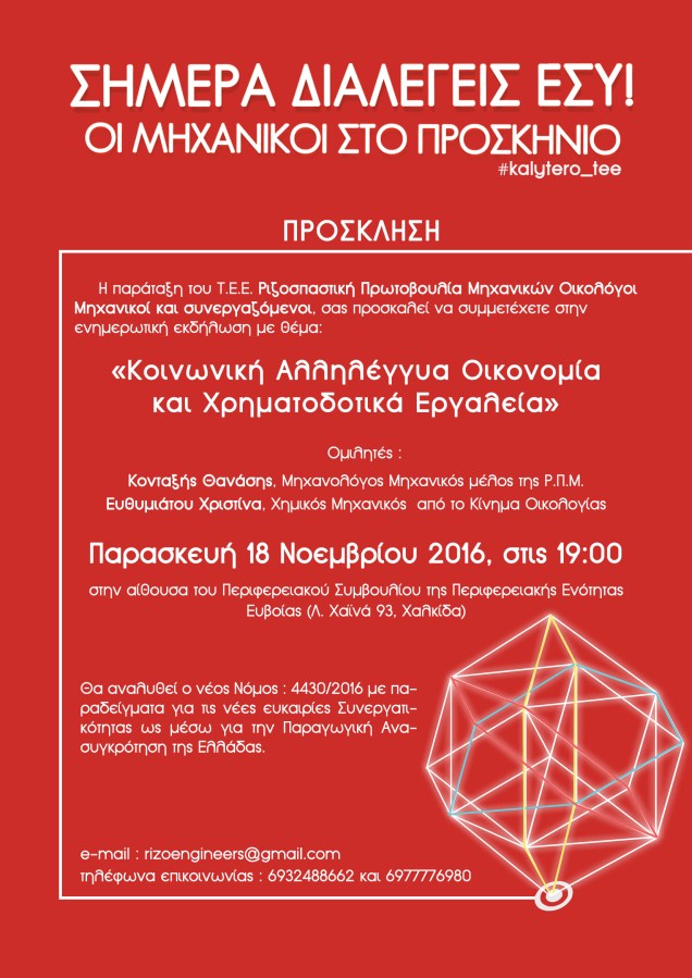 ← Εκδήλωση της ΡΠΜ στην Χαλκίδα την Παρασκευή 18 Νοεμβρίου, 7μμ αίθουσα περιφερικού συμβουλίου για την Κοινωνική Οικονομία.