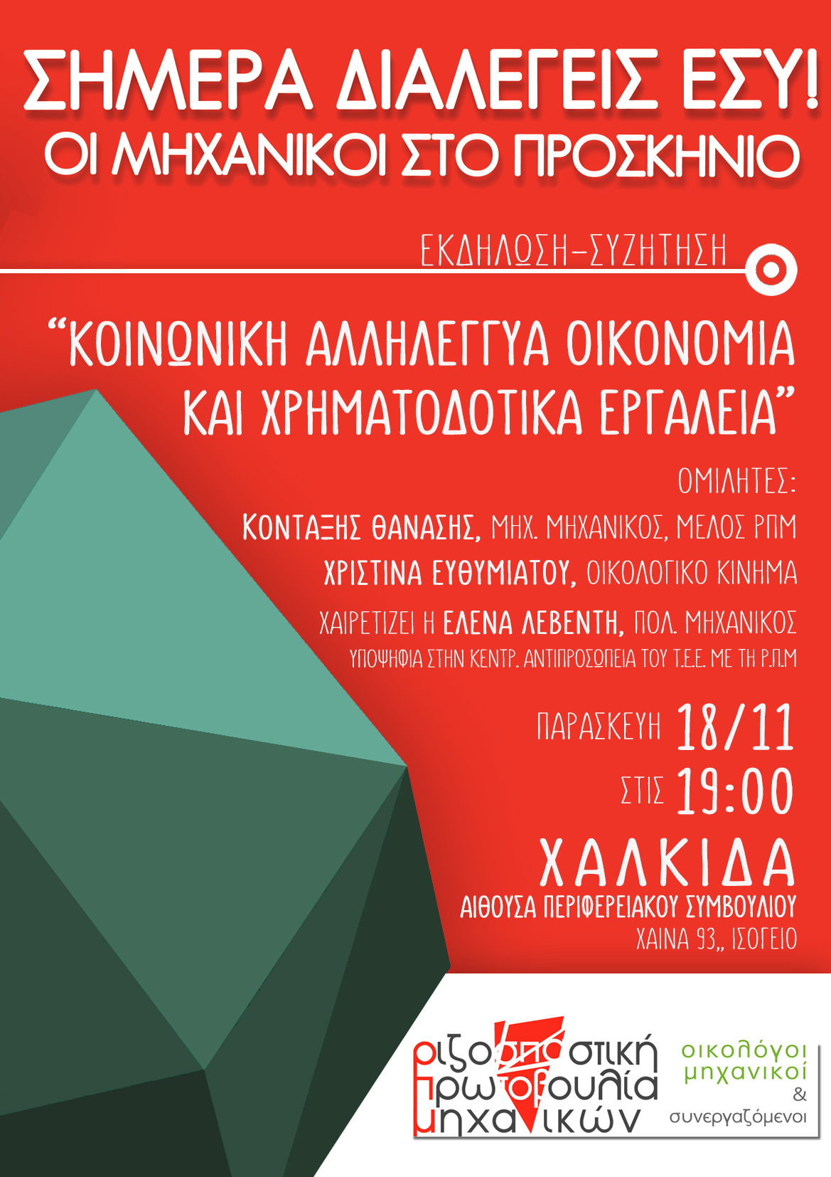 ← Εκδήλωση της ΡΠΜ στην Χαλκίδα την Παρασκευή 18 Νοεμβρίου, 7μμ αίθουσα περιφερικού συμβουλίου για την Κοινωνική Οικονομία.