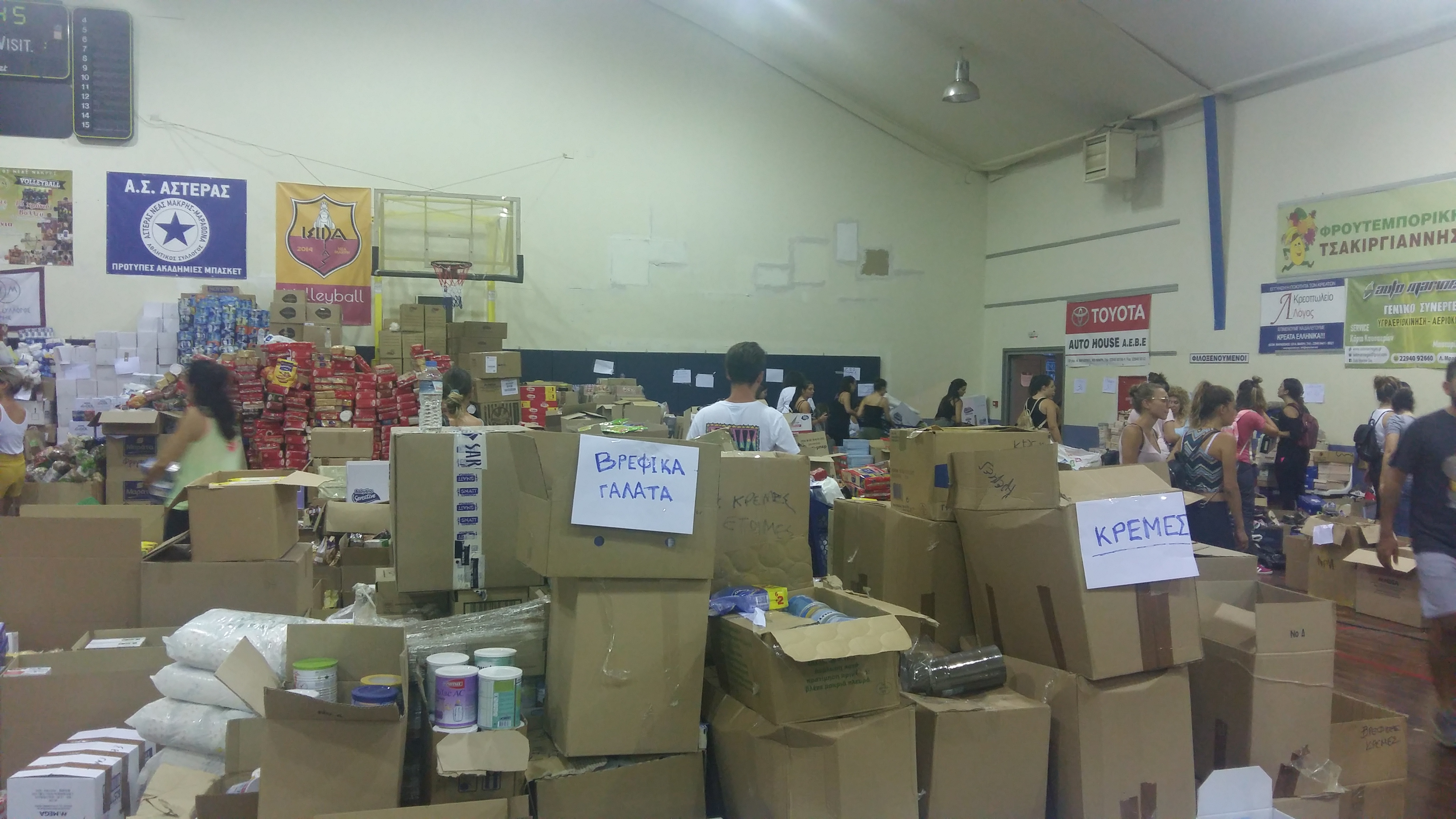 Το ελπιδοφόρο σκέλος της αυτοψίας μας, ήταν βλέποντας από κοντά τι σημαίνει αλληλεγγύη, στις αποθήκες διανομής τροφίμων και άλλων ειδών στο Πολιτιστικό Κέντρο Μαραθώνα στη Νέα Μάκρη.