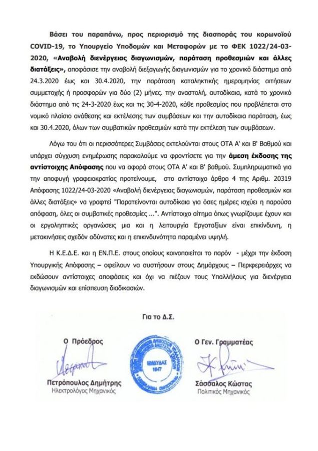 Αναστολή στις προθεσμίες των Δημοσίων Συμβάσεων ζητάει η ΕΜΔΥΔΑΣ