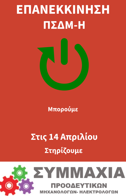 Ουσιαστική επαναλειτουργία του ΠΣΔΜ-Η ώστε να εκφράζονται συλλογικά και να έχουν αποτέλεσμα οι σύγχρονες διεκδικήσεις των Διπλ. Ηλεκτρολόγων – Μηχανολόγων Μηχανικών