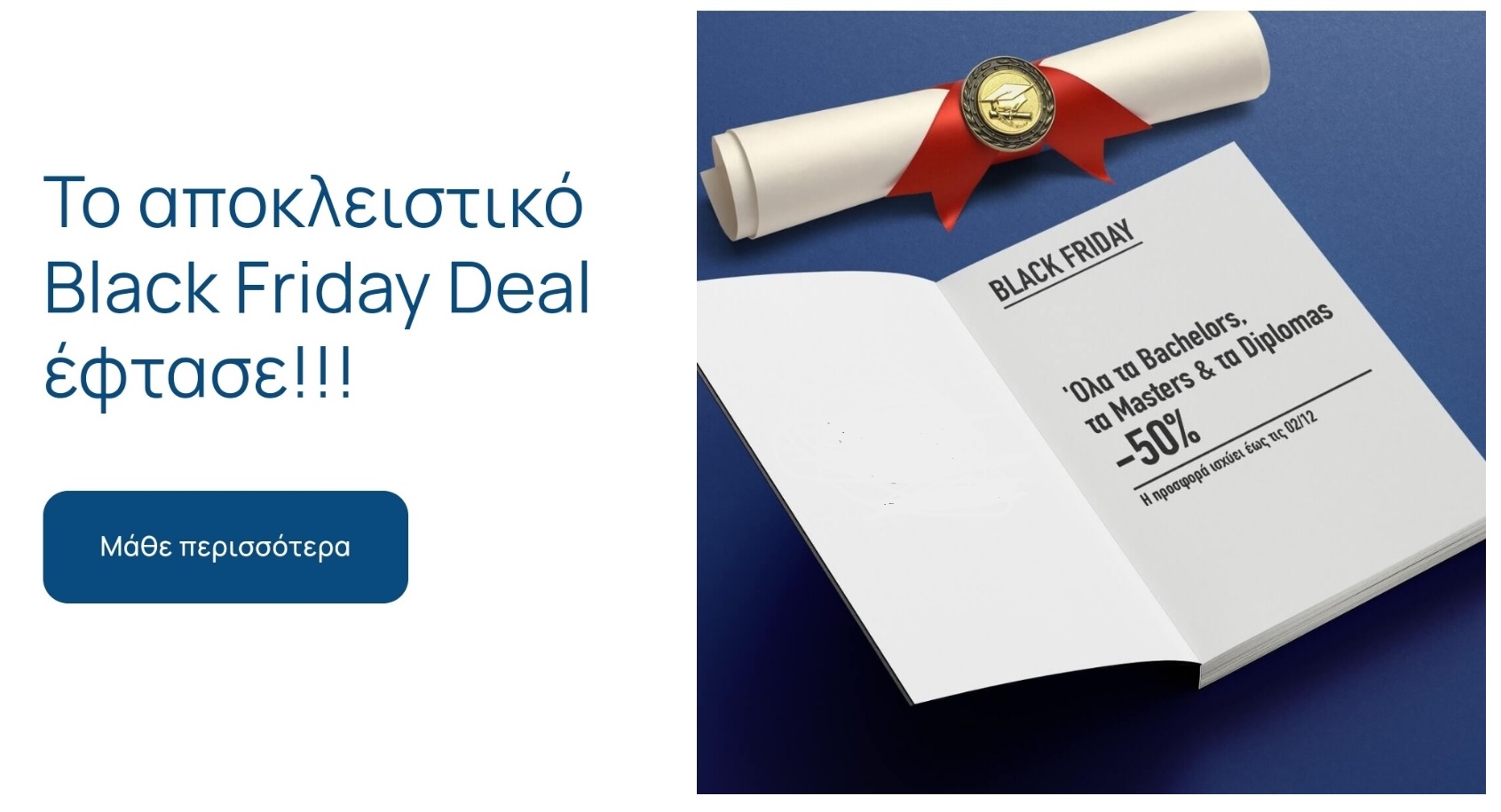 Η διαφήμιση για εκπτώσεις Black Friday σε πτυχία και μεταπτυχιακά από γνωστό ιδιωτικό κολέγιο αποτελεί την επιτομή της κυβερνητικής πολιτικής για τα ιδιωτικά πανεπιστήμια