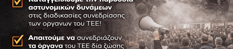 • Καταγγέλλουμε την παρουσία αστυνομικών δυνάμεων στις διαδικασίες συνεδρίασης των οργάνων του ΤΕΕ!